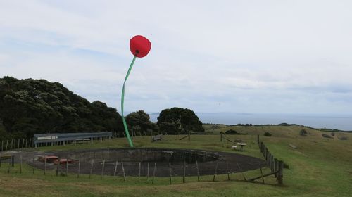 Poppy kite in front of #3 gun emplacement at Stony Batter,