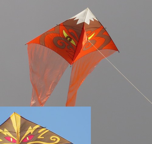 All kites are Block of Flats Deltas - Tongariro is 2.8m wide and rest are 3/4 size. Graphics sewn by Ray and kites made by Rosemary.