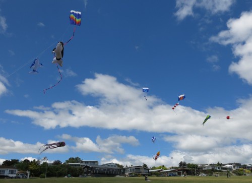 with gusts up to 50km/hr so even the strong wind kites were challenged. The kids enjoyed the Russell's ground "toys".