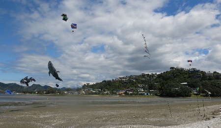 Tairua - Kites were the low tide display after a jet ski racing event.