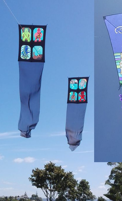 *In the Beginning - telling the legend of the Maori gods. The kites were originally small dellaportas joined to form a stack, but they were a pain to fly. Now